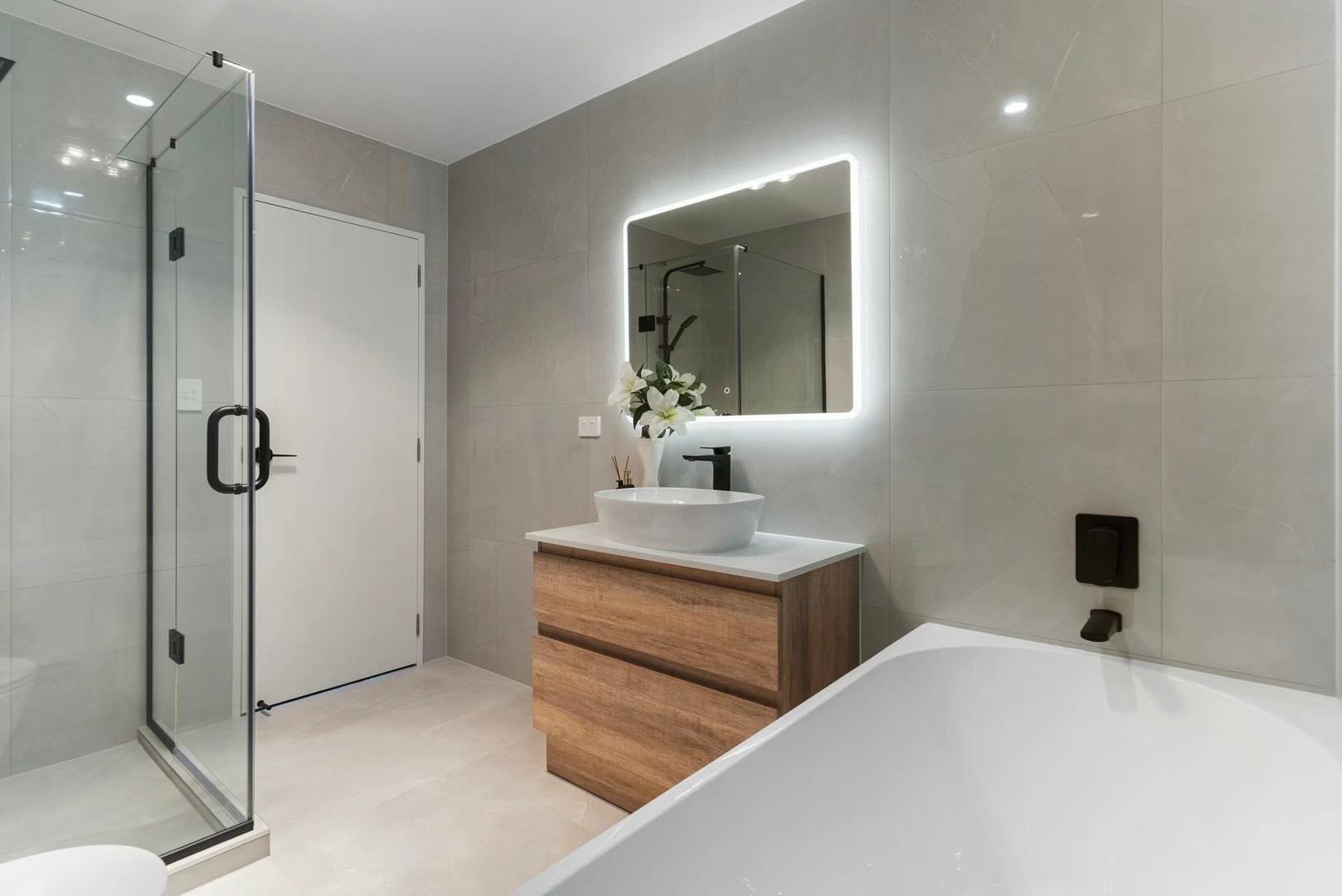 Led mirrors with demister, adjustable lighting options, and touch-sensitive controls or switches.